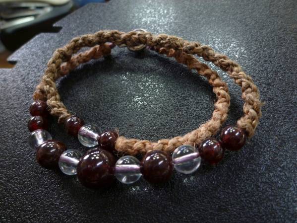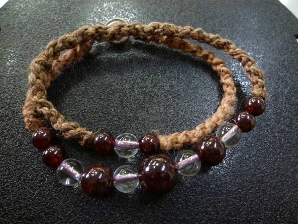 ☆ガーネット、水晶の 高品質の2連マクラメブレスレット商品です。