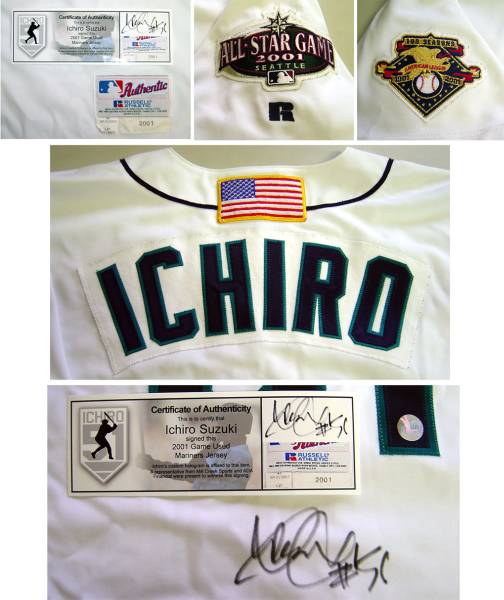 | 商品説明 | 超入手困難! 星条旗付き2001年ルーキー実戦使用イチロー ユニフォーム ジャージーです ルーキーイヤーの実使用ユニフォームなので、このアイテムは「世界の宝」「博物館級」とも言えるジャージーです。 この星条旗付きホームジャージーには更に貴重な#51入り直筆サインがされています! ミルクリークスポーツ&ADAフィナンシャル実物証明書(COA)とホログラムが付きます。 同社の証明書が付いていますので、贋作等の疑う余地は全くございません。 アメリカでも既にイチロー選手の実使用アイテムは大人気で、数百万円で取引されています。 その価値は年々上昇することは間違いございませんので、一生の宝としていかがでしょうか? 大事にされる方に落札をお願いしたいと思います。 新規の方は無条件で削除させて頂きます。 迅速な取引を常に心がけておりますので、よろしくお願いいたします。 | |