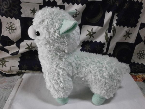 アルパカッソ ぬいぐるみ アルパカ (グリーン)。少しの間飾ってただけですので目立った汚れはありませんが中古ですので細かいことを気にされる方は入札をご遠慮下さい。ノークレームノーリターンでお願いします。その他多数出品していますので同梱もできます。