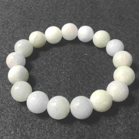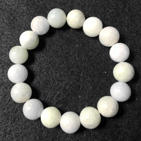 白玉(上質翡翠)の12mm丸玉を腕輪(ブレスレット)にした玉石細工です。