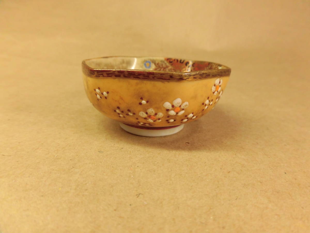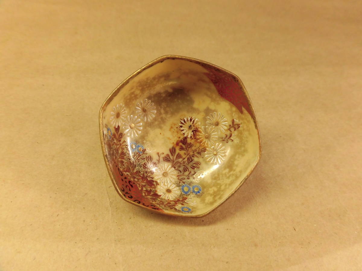明治期 九谷の名工・清水美山作 盃です。咲き誇る菊花満開です。口径5.7×底3×高3センチです。キズはありません。高台内に九谷美山の銘があります。