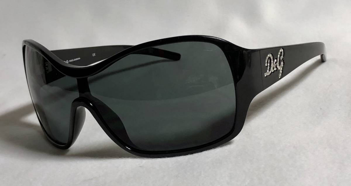 正規良 セレブ愛用! DOLCE&GABBANAドルチェ&ガッバーナ D&Gロゴサングラス 黒×石 ブラック×シルバー×ライトストーンアイコン 男女兼用