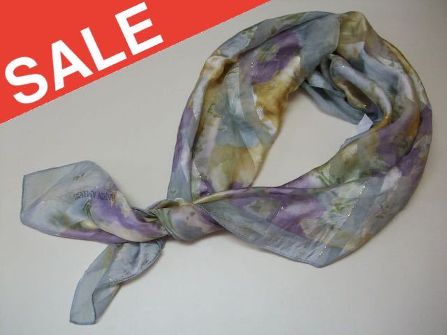 (^_^)絶品/スカーフ/ハーディエイミス/HARDY AMIES/シルク/絹/水色/紫/緑/X5