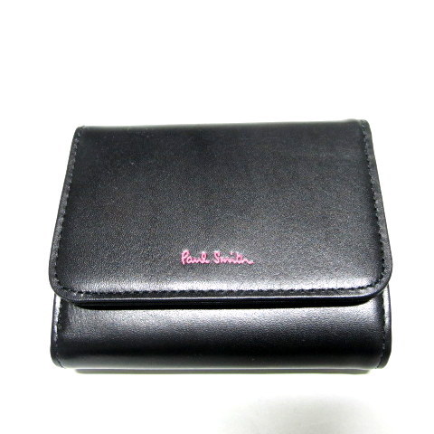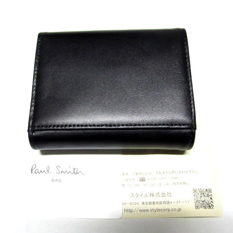 新品/箱有ポールスミス Paul Smith 三つ折り財布 カラフルクラシ 牛革 ブラック