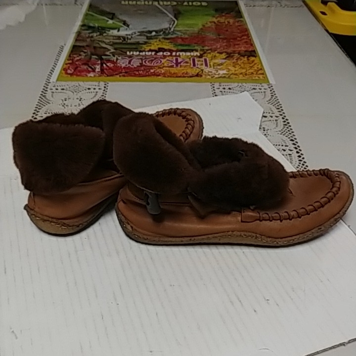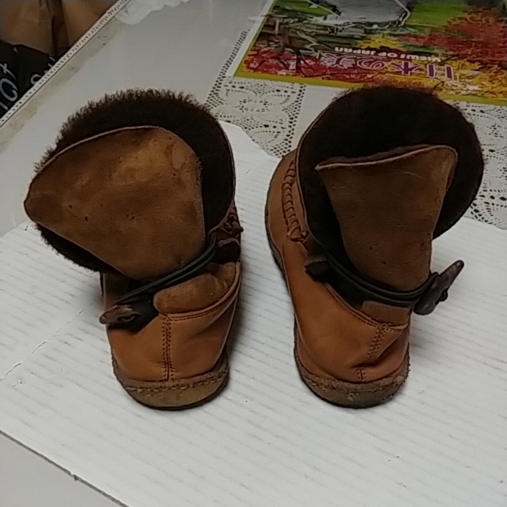 履き口のファーはさることながら、靴紐にあたるものがトグルで、というのもクラシカルで良い!