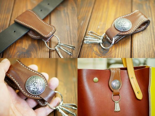 送料無料 チョイ掛け!! レザ-キーホルダー ハンドメイド 本ヌメ 引っ掛けキーホルダーlkh14