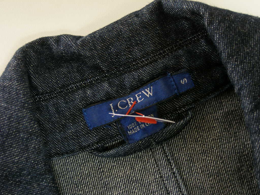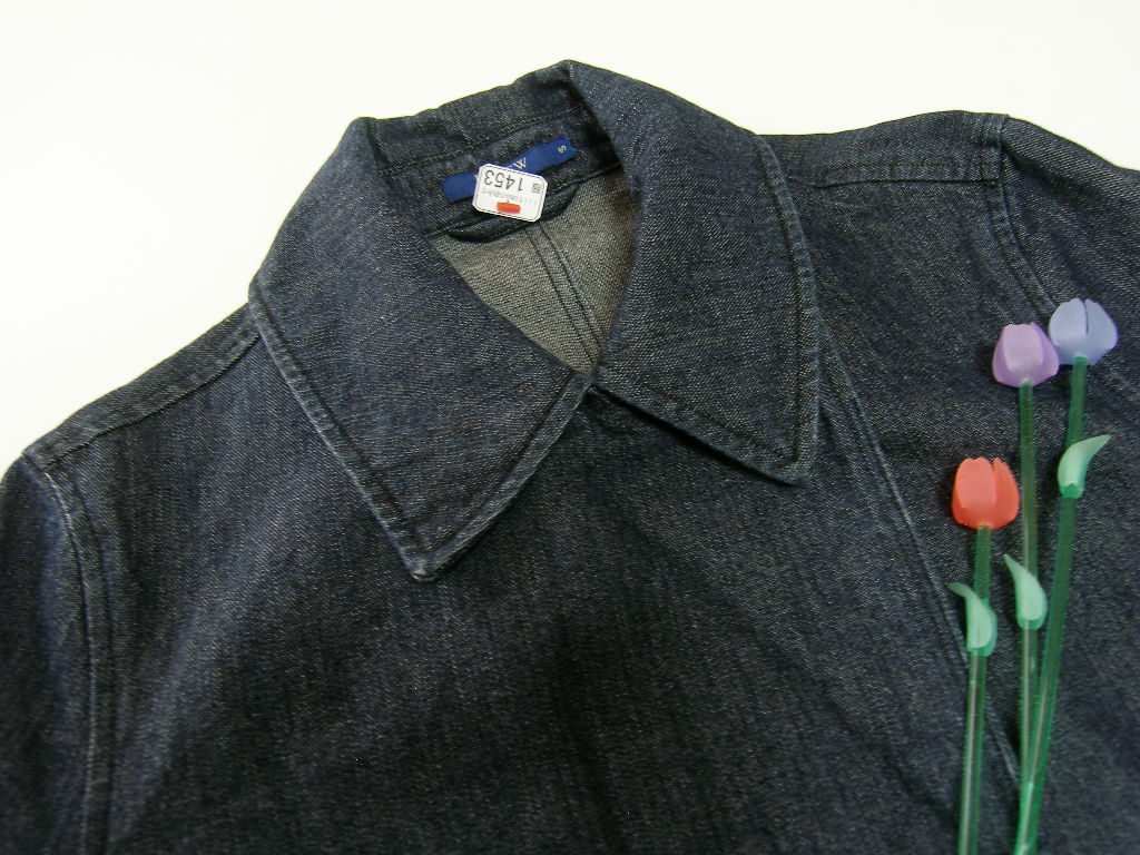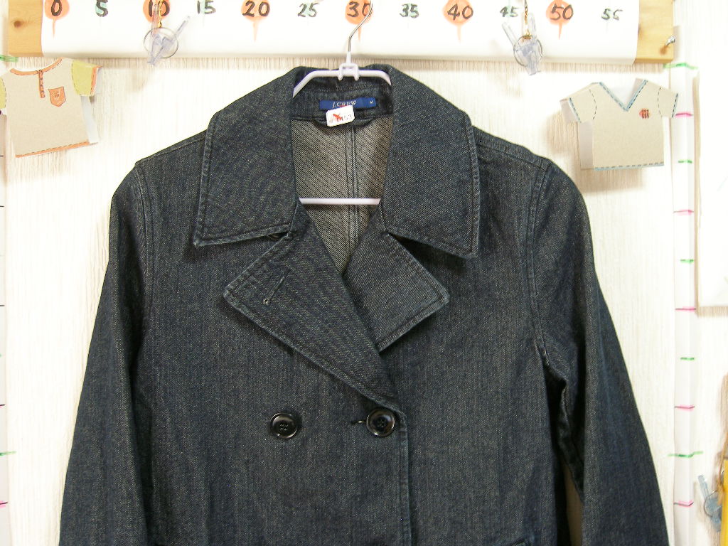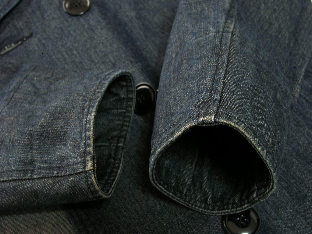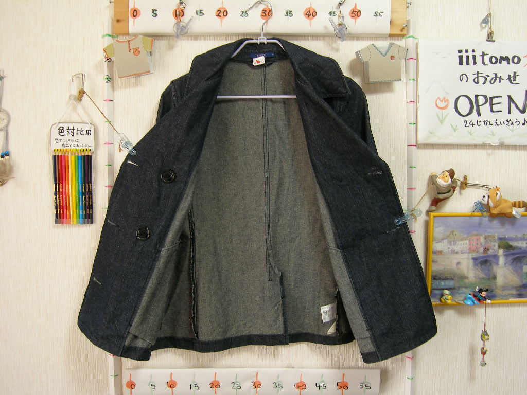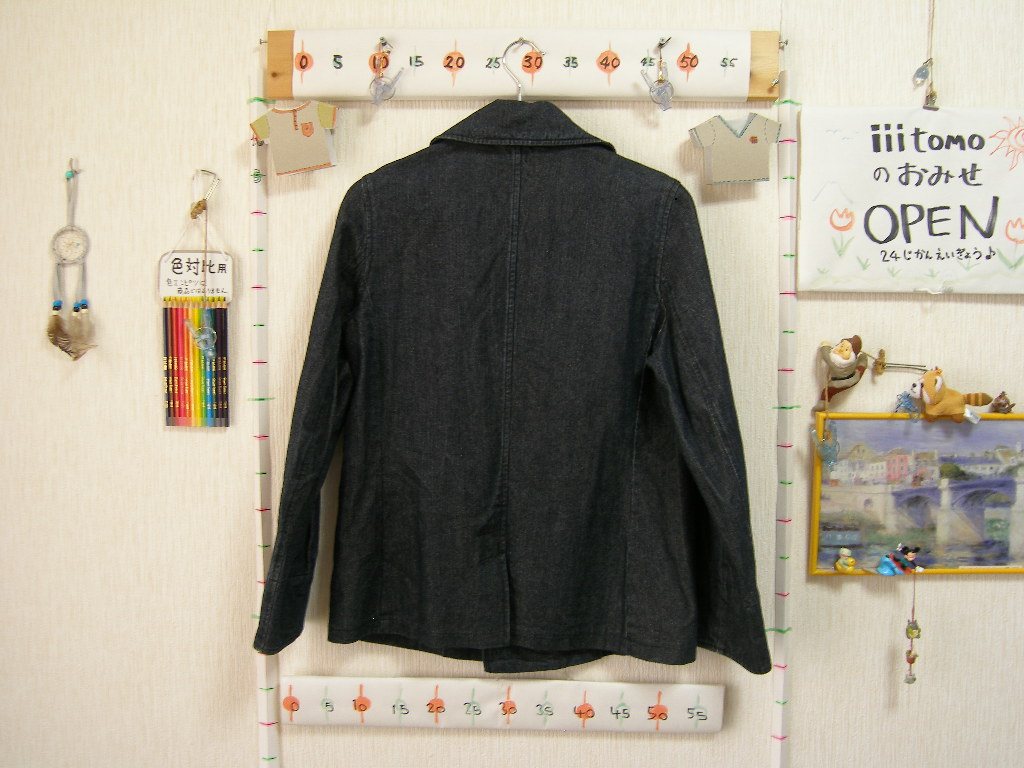 商品の補足説明(主観的な内容も含む) デニムの襟の大きなジャケット(コート)です。 メンズ側(左側を上に重ね)にすると、一番下にボタンホールがありません。(上の2個は留められます。ちなみにレディース側にすると、3個ボタンを留められます) 「S」サイズになっているので、サイズ的にはメンズかなと思いましたが、男女兼用できそうなデザインです。 ジーンズ程度の厚みで、新しいジーンズくらいの生地の硬さです。 現状は袖口が少し色落ちしている程度ですが、インディゴ染めですので、使用によりすこしずつ色落ちすると思います。 3~5ミリ程度、色が茶色っぽくなっていますが、右側を上に重ねると見えなくなるため、女性の場合はボタンを留めると見えなくなると思います。(2か所、写真でご確認ください) |