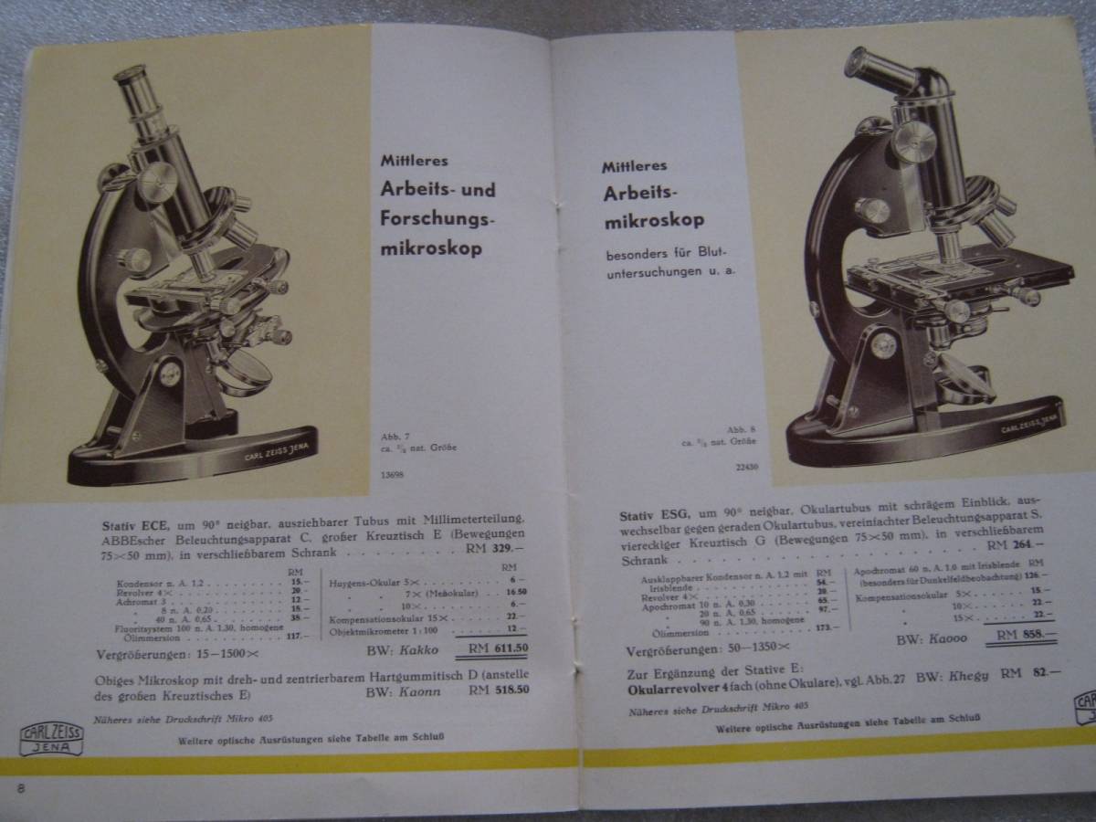 【カールツァイス】ZEISS 顕微鏡システム 総合カタログ 価格付 1938年刊