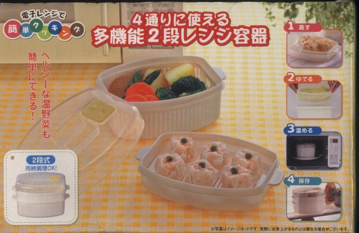 1、蒸す、2、ゆでる、3、温める 4、保存と4通りに使える多機能2段レンジ容器