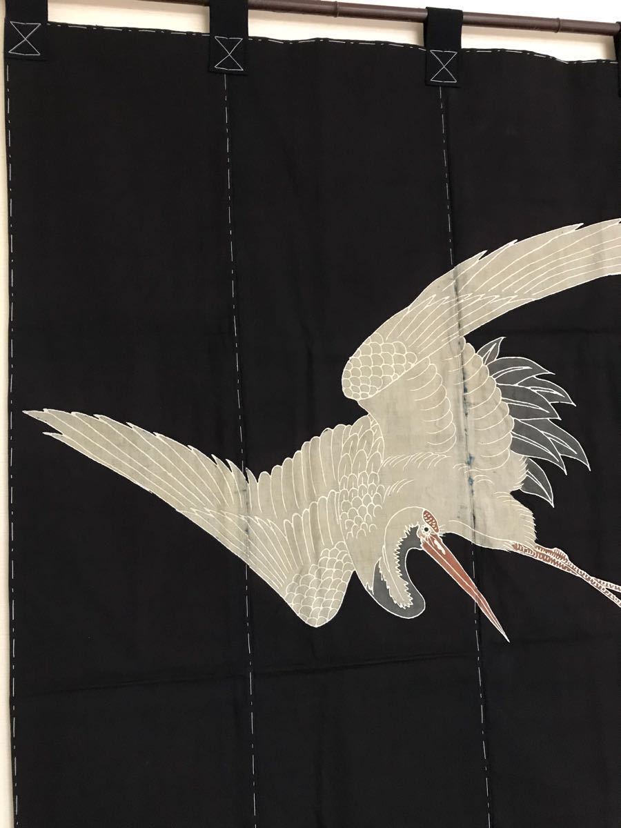 【未使用 美品】4幅 タペストリー ふさ付き 古布 藍染 鶴 亀 壁掛け 大正 昭和初期 レア ビンテージ 骨董品 慶事