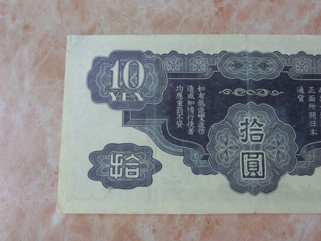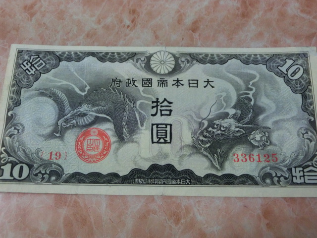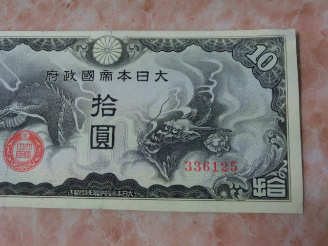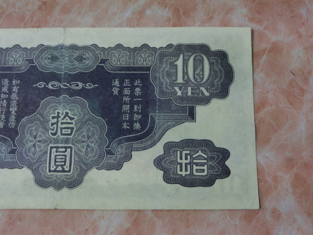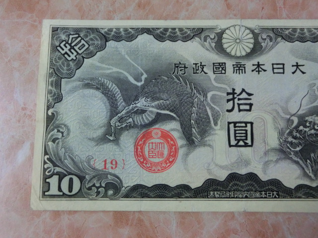 日華事変軍票 戊号10円の最終記号 19番の上美品です。