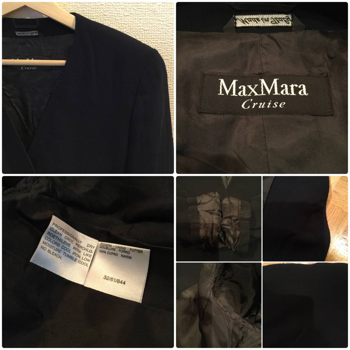 マックスマーラ MaxMara ノーカラーロングジャケット42/ストライプ柄刺繍