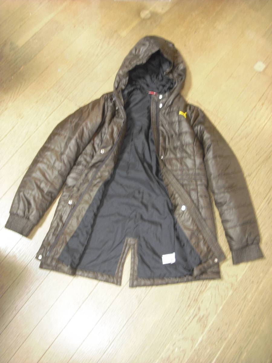 写真のような洋服になります。 前ファスナーと金属はめ込みボタン式5個あり。 ポッケ2か所あり。 フードは取り外せません。 サイズはM バスト:81~85 身長:157~163 表地:ポリエステル100% 中綿:ポリエステル100% 裏地:ナイロン100% プーマジャパン(株) MADE IN CHINA 私見ですが…お色は光沢のあるブラウンっぽいです。 おおまかですが・・・着丈76cm、身幅50cm、袖丈63cmくらいです。 写真の状態でメジャーで測っています。 保管中の汚れ、畳みジワ、経年劣化、他商品と触れあっているため糸クズの付着などございますし、中古であり、個人所有になりますので糸のほつれ、汚れやスレなどの痛みがある場合もございます。 現状でよろしくお願いします。 約437g 空気を抜いて郵便サイズまで畳んで梱包する予定です。 簡易包装の規格外の定形外郵便500gか、ギュッと潰してレターパックプラスで発送予定です。 |