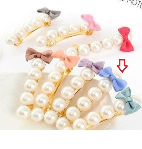 商品名:おしゃれ 人工パール リボン付 バレッタ ブルー かわいいおしゃれ 人気 カジュアル