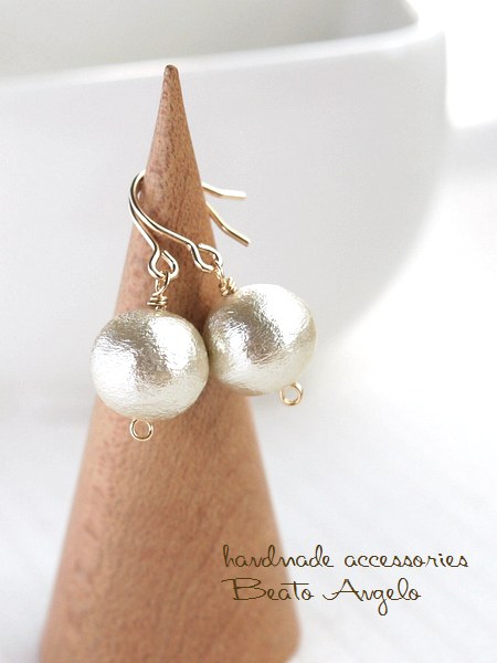 ◇◆+angelo+K14GF コットンパールのピアス(p-083)ライトベージュ 10mm シンプル 一粒