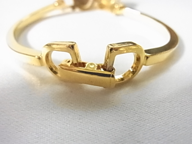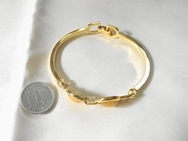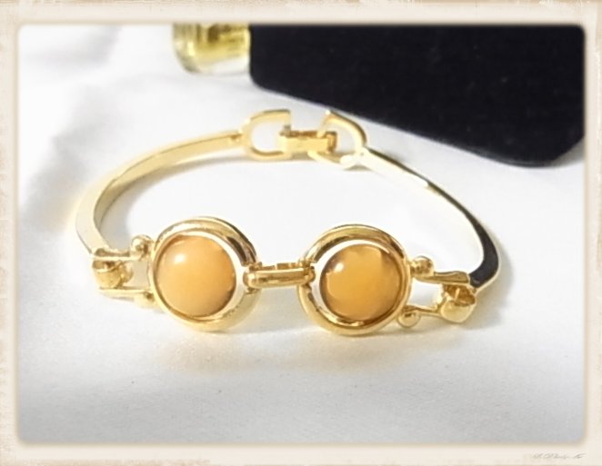 サーモンピンク 薄い桃色 ストーンが2つ ゴールドカラーが綺麗なブレスレット▽