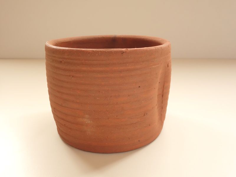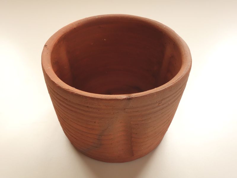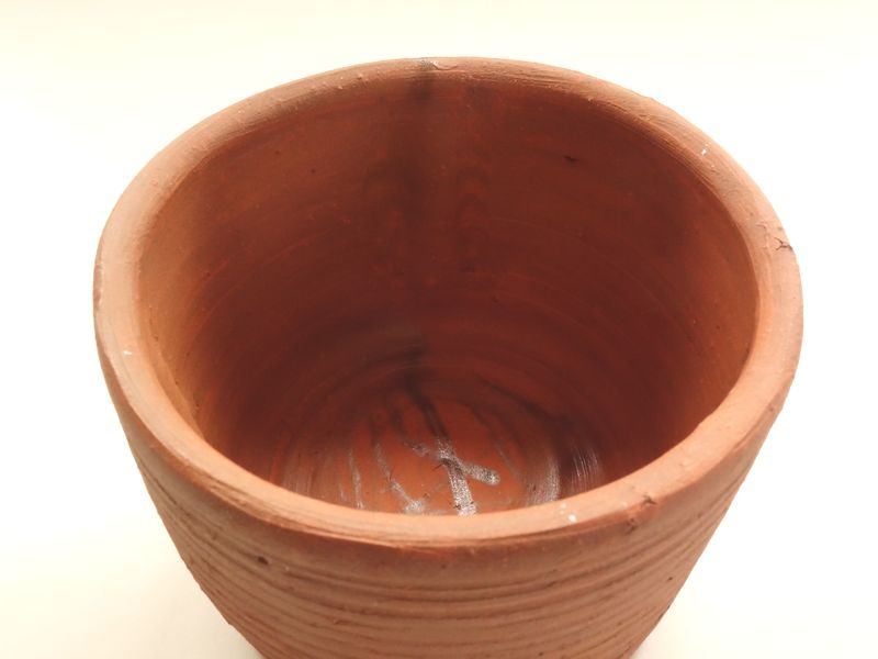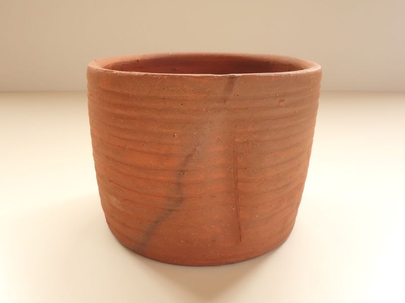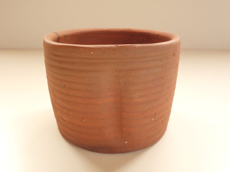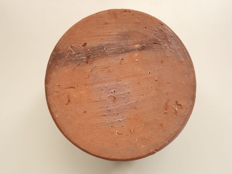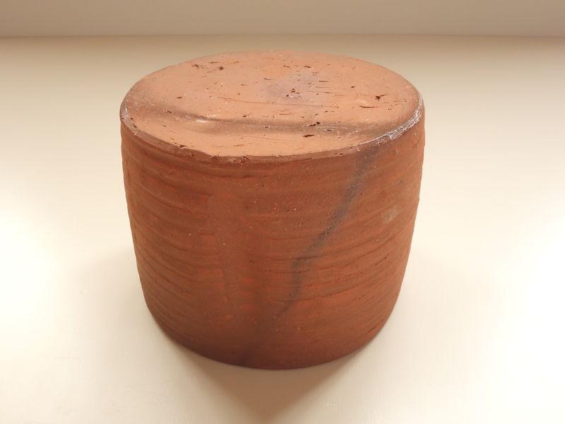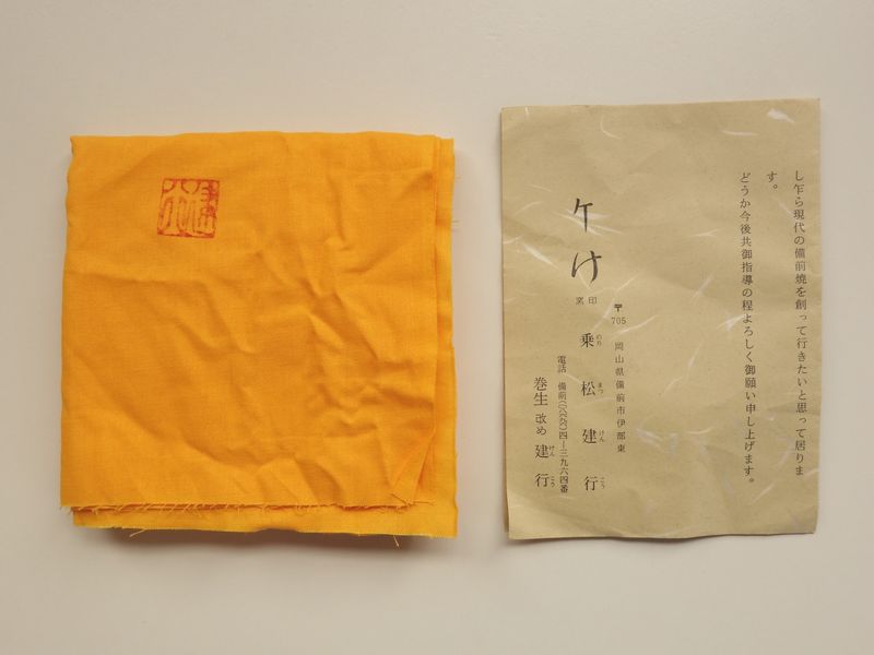 乗松建行の備前焼 緋襷建水 共箱 共布 栞付です