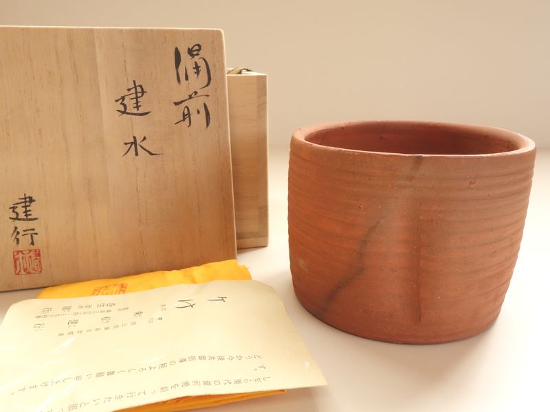 備前焼 乗松建行 緋襷 建水 共箱 共布 栞 茶道具