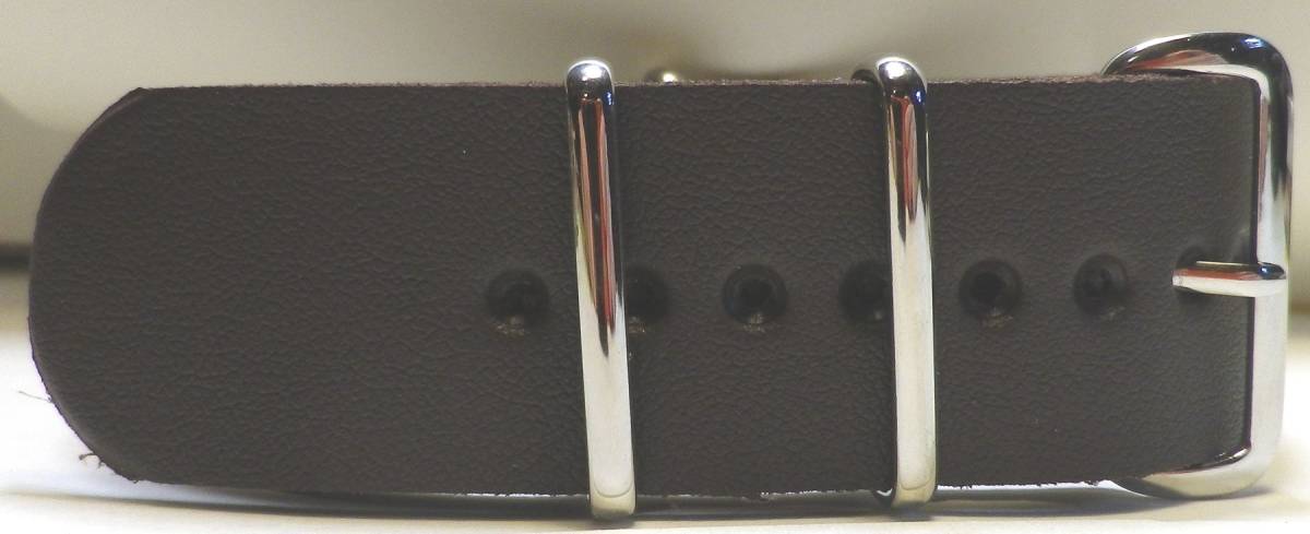 24MM NATO ミリタリー尾錠 PU革 ベルト新品 ダークブラウン LONG