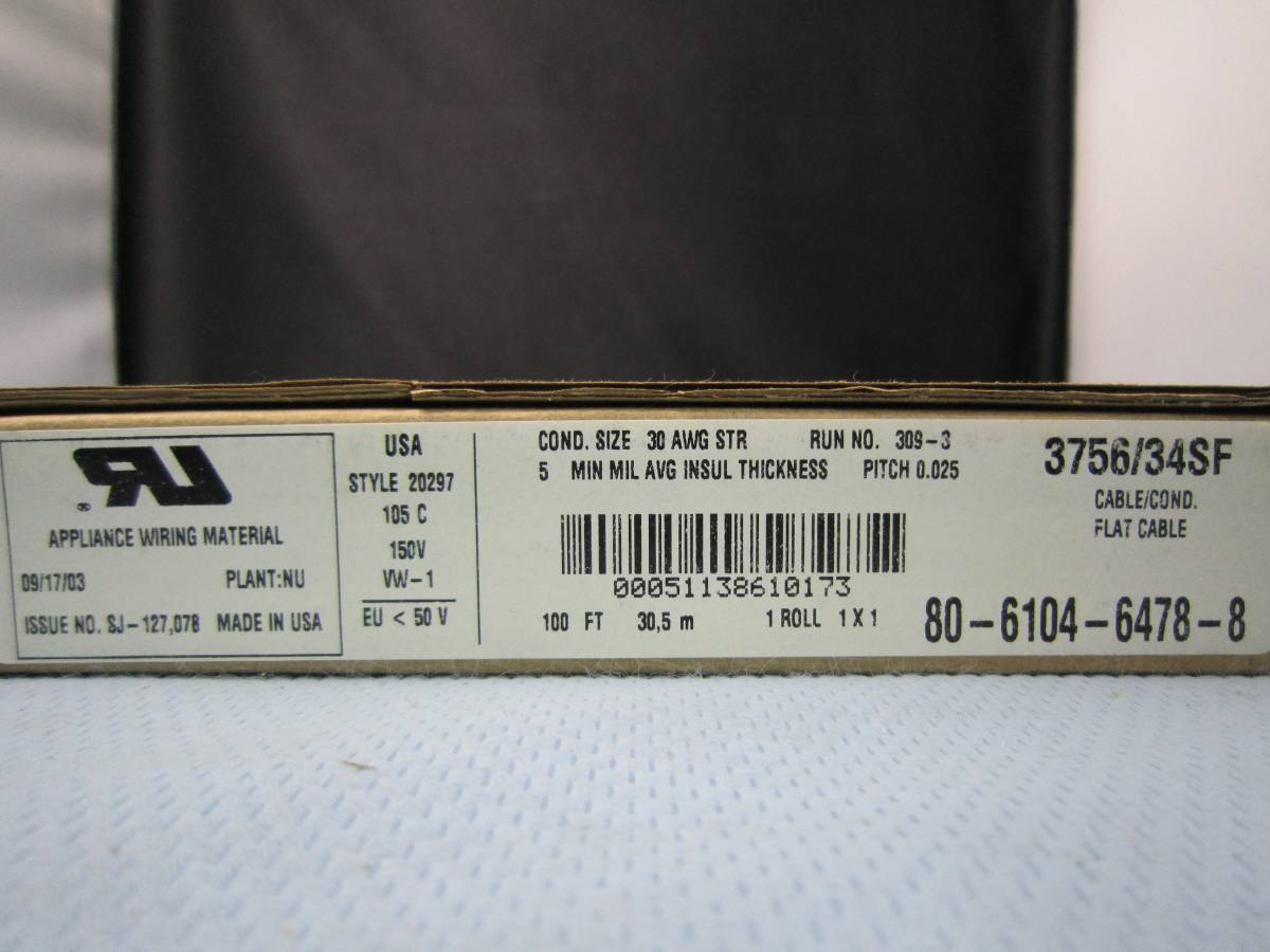 FLAT CABLE フラットケーブル3756/34SF COND.SIZE 30 AWG STR RUN NO.309-3 STYLE 20297 105C 150V VW-1   1巻 (F)