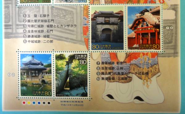 琉球王国 世界遺産 第10集 H14年 ◆未使用◆ 記念切手 切手