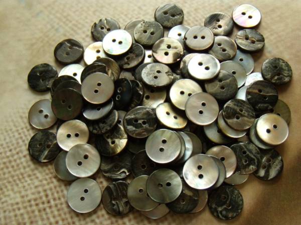 | ★☆黒蝶貝 ボタン まっ平ら 2ツ穴 №100 15mm 100個☆★ | |||