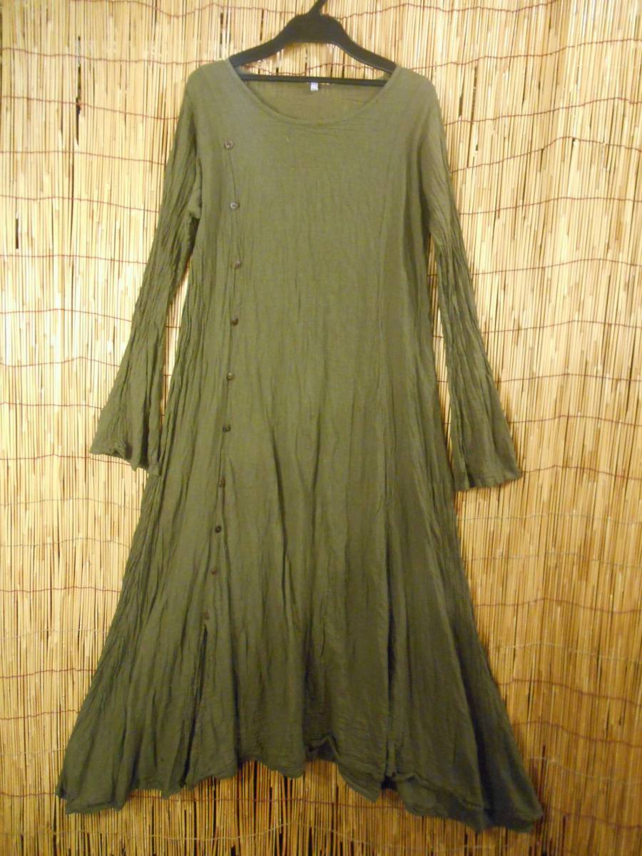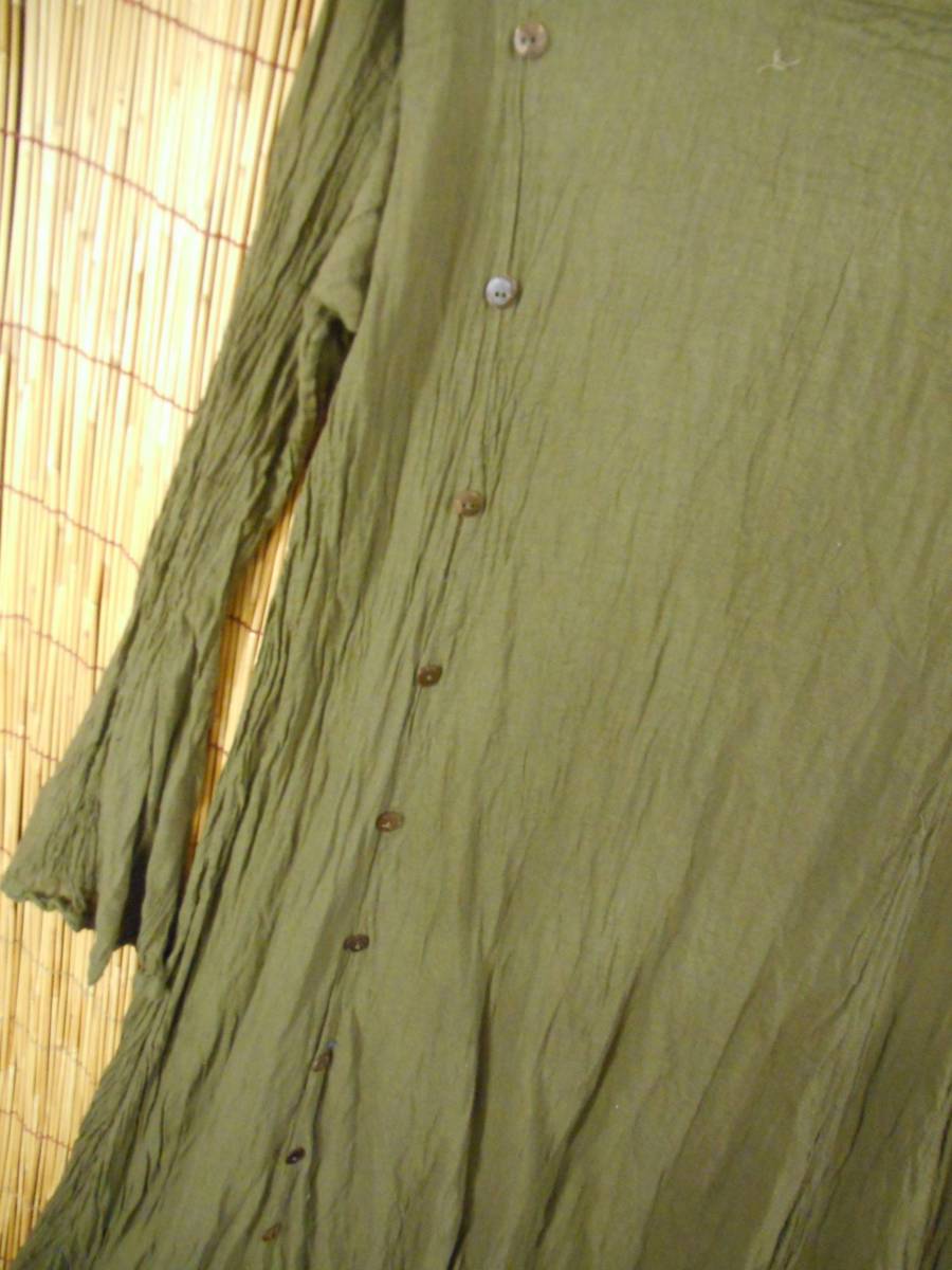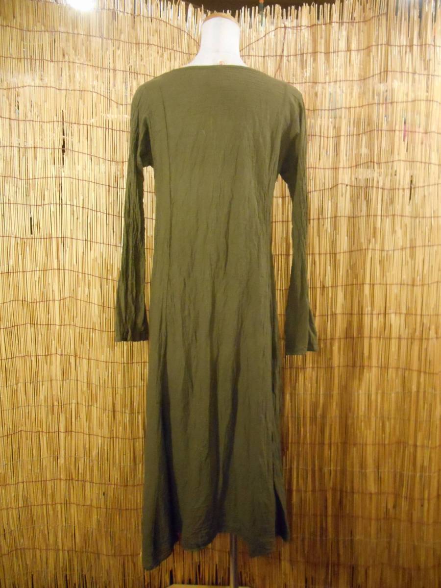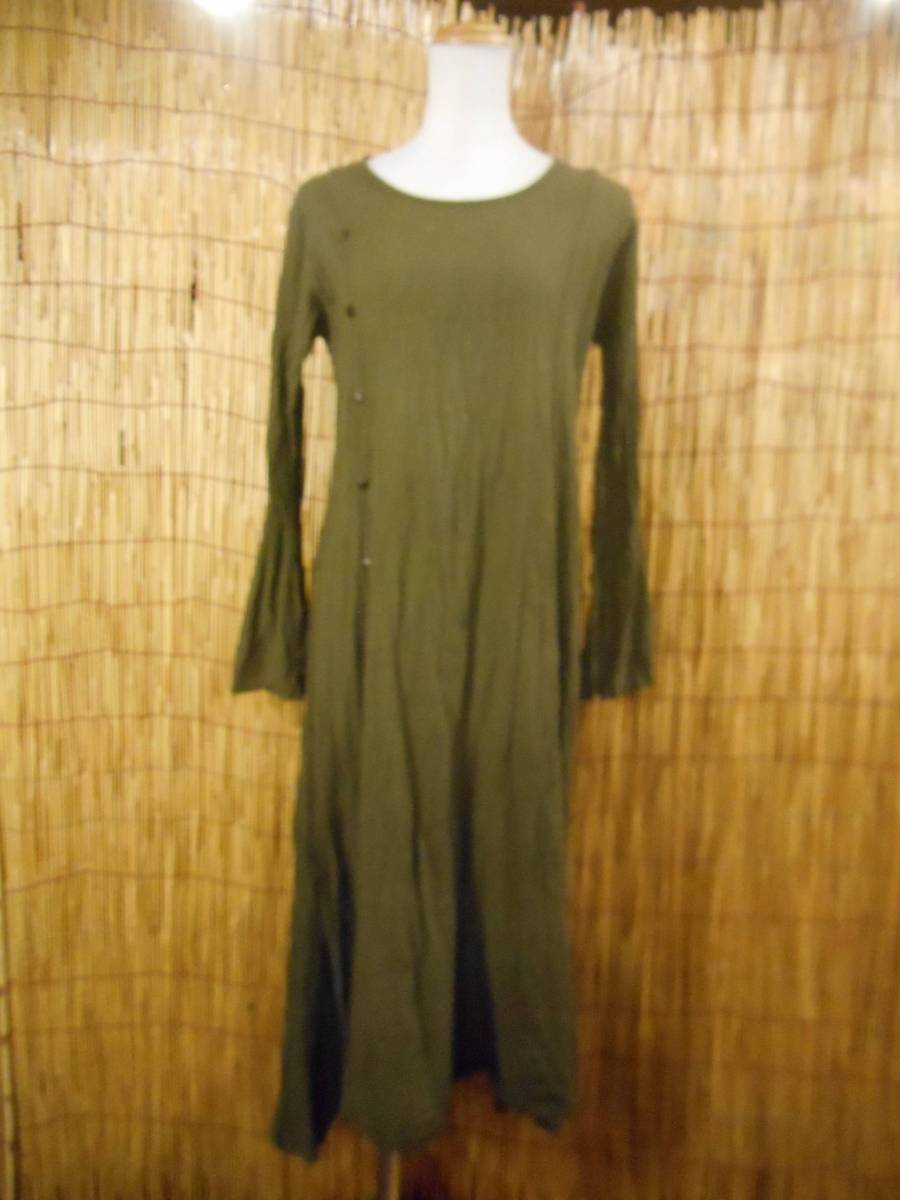 ④新品★薄めコットン素材★無地★飾りココナッツボタン付き★長袖ロングワンピース
