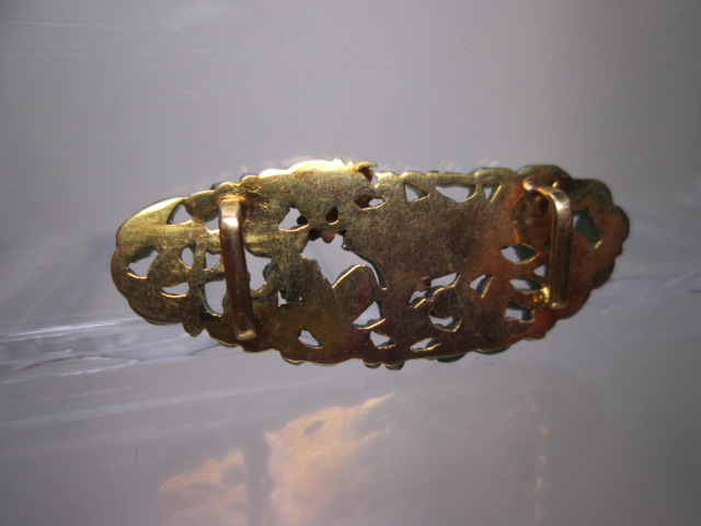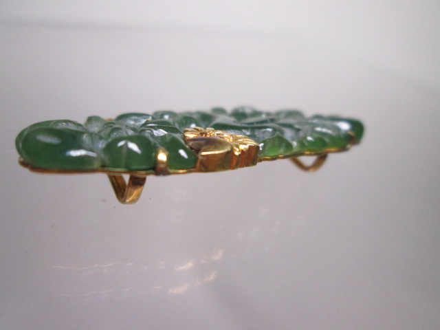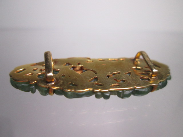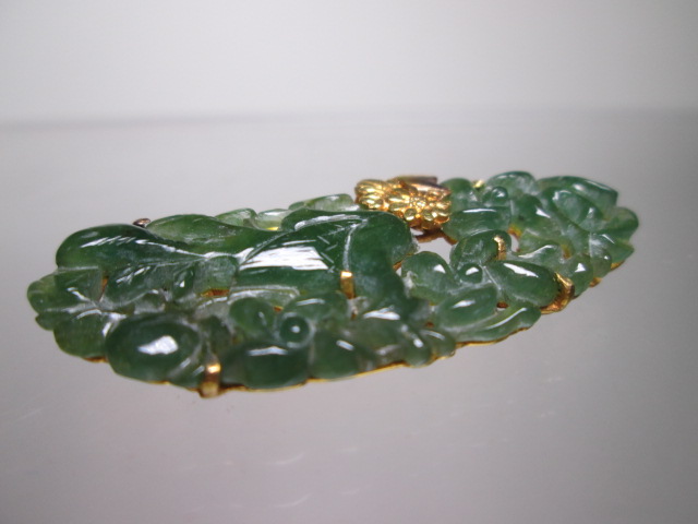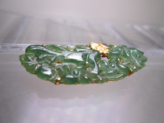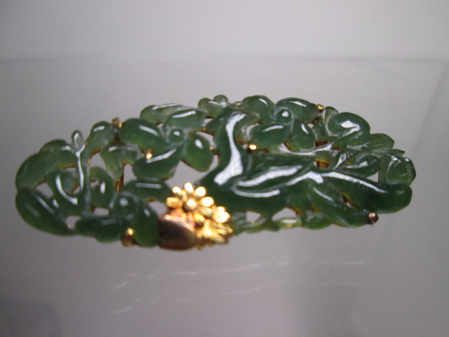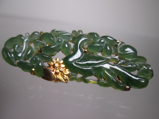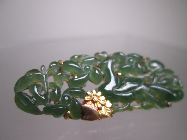 【江月】アンティーク・金細工 本翡翠 花鳥透かし彫刻の帯留め 5g