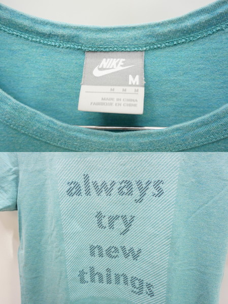 ナイキ製、ライトなブルー・グリーン系色の細身Tシャツ。 女性らしいキレイなシルエット感。 爽やかなお色味の一枚です。 大きな汚れやダメージございません。 【サイズ】 表記 M 着丈:54cm 肩幅:38cm 身幅:44cm 袖丈:16cm 【状態】 若干の使用感はございますが、問題なくご着用頂けます。 ※お使いのPC環境などにより、表示画像と色合いが若干異なる場合がございますのでご了承ください。 ------------------------------------------------------------------- ★発送詳細 ・送料サービス ------------------------------------------------------------------- ★注意事項 ・基本的に日、祝日の発送はしておりません。 ・入札前に自己紹介欄を必ずお読み下さい。 ・終了間際のご質問にはお答えできない場合がございます。 ・素人採寸ですので若干の寸法間違いはお許し下さい。 ・あくまで中古品です。気になる点に関しましては入札前にご質問下さいませ。 |