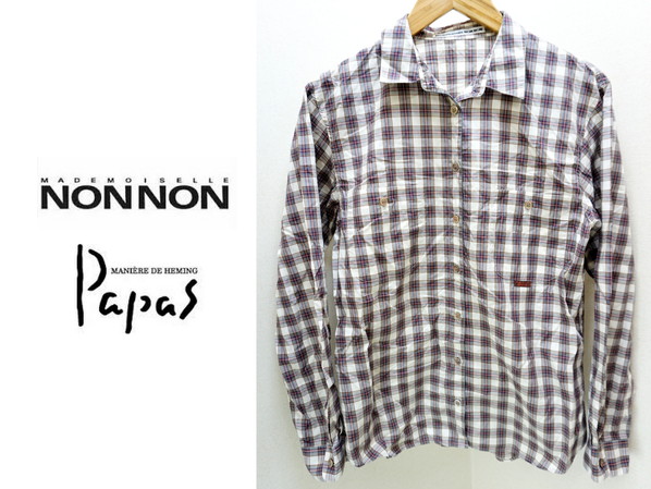 パパス ★ PAPAS マドモアゼル ノンノン レディース 長袖 チェック シャツ Lサイズ 大人カジュアル 派手過ぎず着回しのきく一枚♪●M