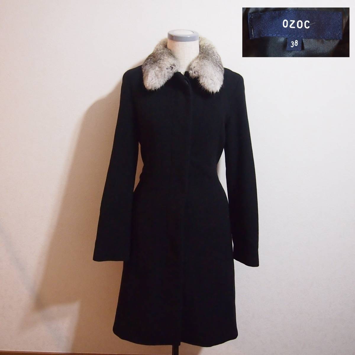 [良美品!OZOC ラビットファー付きロングコート38黒]を出品します。