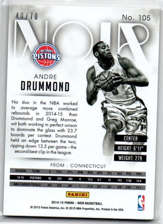 【ANDRE DRUMMOND】2014-15 Panini Noir #105 CLR 40/70