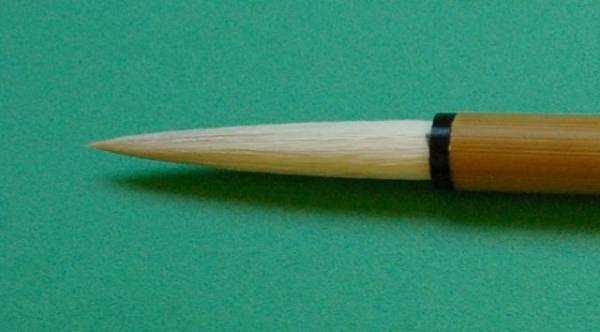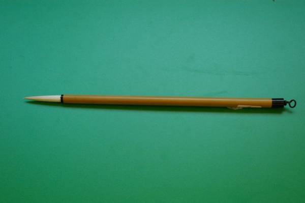 羊毛とイタチを混ぜて作った筆です。羊毛の柔らかさとイタチの硬さを併せ持った、なめらかな筆に仕上げました。楽しい線が描けると思います。穂の長さ4cm 内径6mm 軸の長さ22,7cm。