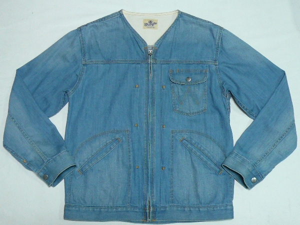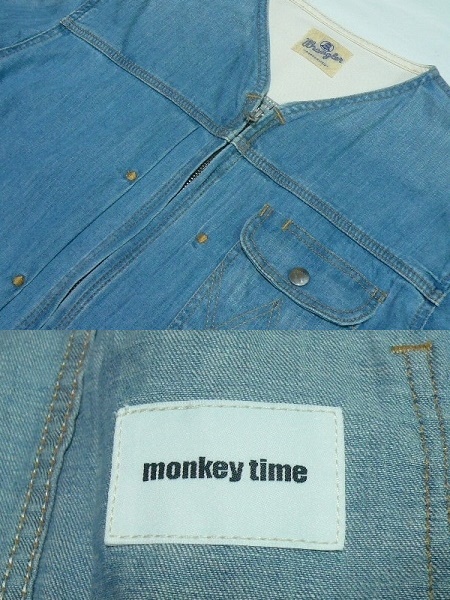 美品MonkeyTime別注Wrangler[DenimJacket]M(38)襟無し麻混デニムジャケットUsedWash | |||