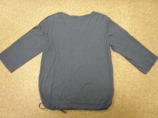 | 【ブランド・形態】 MELROSE メルローズです。 【カラー】 濃いグレーです。 掲載の実物写真はPC環境や光の加減により実物と色合いが若干異なる場合があります。 【特徴】 ラウンドネックでふちのメリヤス部分が変わったデザインです。 前身頃の左すそでしぼれるように、ひもがついています。(写真参照) 七分袖の袖はベルトで調節できるようになっています。 【状態】 少々使用感はございますが、特に目立つダメージは見受けられず、着用に問題無いと思われます。 洗濯による毛羽立ち、元の色が濃いので色あせあります。 【素材】 コットン100%です。 【記載サイズ】 サイズは無表示ですがMと思われます。実寸も参考にして下さい。 【実寸サイズ】{平置き採寸} 縮みや伸びが生じている場合がありますので実寸サイズをご参照ください。 着丈 : 約57cm (背面襟下から裾まで) 肩幅 : 約33cm (両肩を直線で結んだ線) 身幅 : 約48cm (両脇を直線で結んだ線) 袖丈 : 約43cm (肩縫い目から袖先まで ) 尚、素人採寸です多少の誤差はご了承下さい。 裄丈 : 約---cm (後衿ぐり中央から肩先までを水平に計った長さと、 肩先から袖口までを足した値 ) | |||