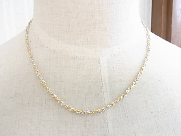 ★エレガントで上品な金色と銀色のツイストチェーンのネックレス