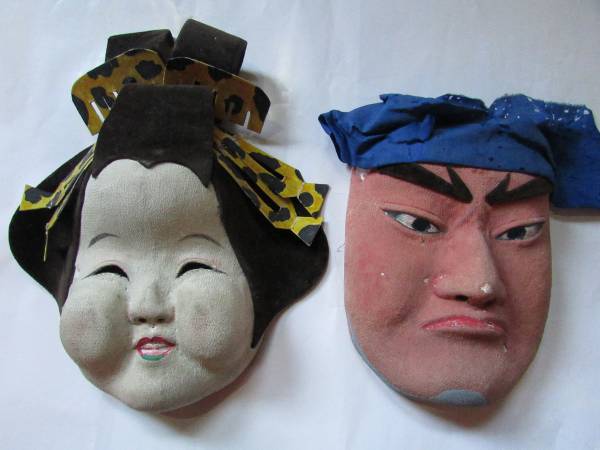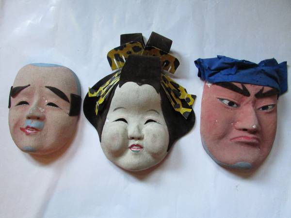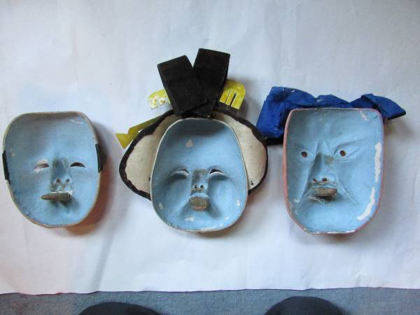 (旧家・蔵出し)(古い時代の踊面・3種)お多福さん・貴重珍品