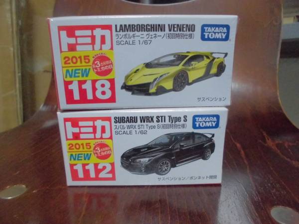 トミカ No.112 スバル WRXSTI TYPE S No.118ランボルギーニブェネーノ初回特別仕様2台セット、新品、未開封ノークレーム、ノーリターンでお願いします支払方法簡単決済発送方法定形外保証なし、ゆうパック、ヤマト