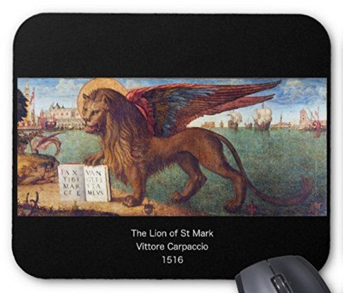 イタリア、ヴェネツィア派の画家、ヴィットーレ・カルパッチョ (Vittore Carpaccio, 1455年頃 - 1525年頃)の絵『 聖マルコのライオン 』をデザインして作った 最高級マウスパッド です。カルパッチョが大好きな、あなたのために作りました(日本国内の工場で美しく丁寧に焼き付け加工しています)。