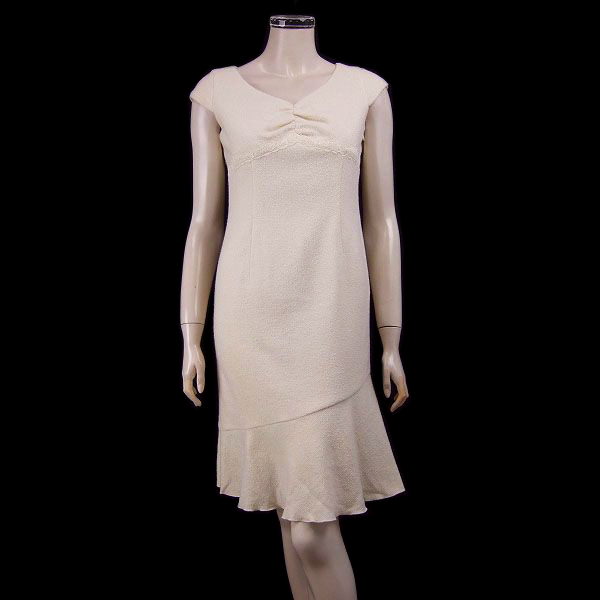 ![]() ![]() 落札後はオークション終了のお知らせメールに出品者からのメッセージが御座います。 自己紹介欄には急な休み等の記載をする場合が御座いますので一度お目通し頂きます様お願いいたします。ご一読の上オークション終了後2日以内の連絡、 落札後4日以内のご入金のお約束を守って頂ける方のご入札をお待ちしております。 小さい子供がおりますのでお急ぎのお取引を希望される方のご入札は遠慮下さいませ。 ---↓ここにブランド名記入---- ブランド名:ef-de エフデ (株)フランドル 日本製 ---↓ここに特徴記入---- 特徴:優しいオフ白(僅かにクリーム系)柔らかいアンゴラ混ウールの膨れ織地♪胸元シャーリング&レースがとても色香♪プチスリーブ&裾斜め切替えの美女ワンピースです。 ---↓ここにサイズ記入---- サイズ : 9号 表示(トルソーは9号です) 実寸 肩幅35cm、身幅41cm、袖丈7cm、着丈97cm、ウエスト35cm、ピップ42cm、裾幅68cm、合わせ部左サイドファスナー留 ---↓ここに素材記入---- 素材 : 毛73% ナイロン20% アンゴラ7% レース部分 ナイロン85% ポリウレタン15% 裏地ポリエステル 100%