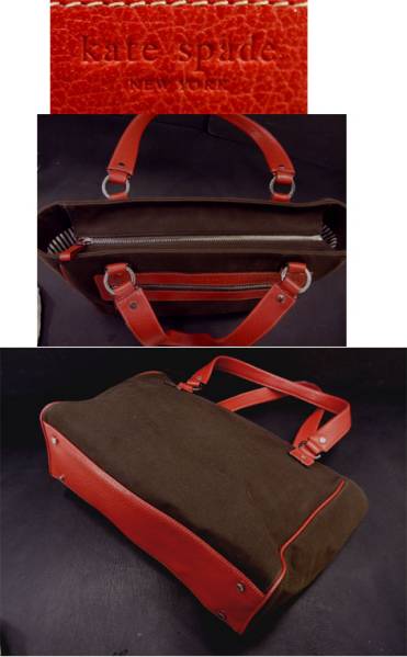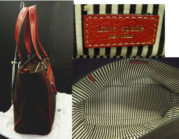 ケイト スペード焦げ茶 キャンバス x革 トート