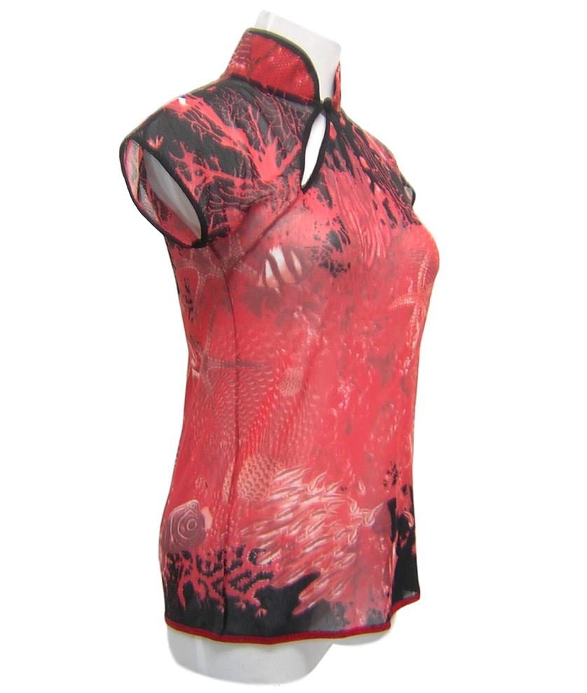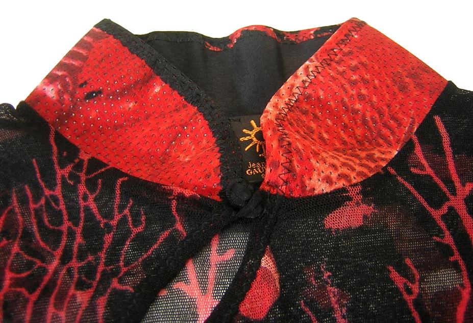 Jean Paul GAULTIER SOLEIL のイタリア製、 マリン柄チュールチャイナトップスでございます。 伸縮性あり/透け感あり | |