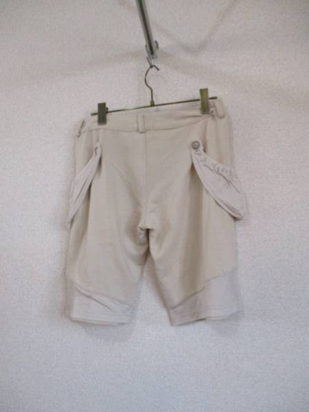 商品紹介 | カットソー素材のベージュのハーフパンツです。 ポケットはウエストで縫い合わされていて、 横でボタンで留める浮いた形の物が付いています。 本体は少し厚手ですが、ポケットと後ろ裾は薄手のカットソー素材が使われています。 (薄手生地はやや透け感あり。) 《素材》 ポリエステル62% レーヨン32% ポリウレタン6% 別布:リヨセル100% |