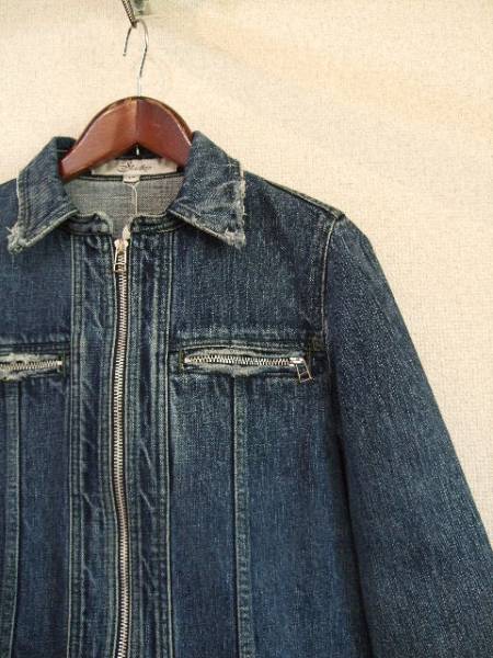 商品紹介 | フロントとポケットのファスナーがポイントになったデニムブルゾンです。 襟等ダメージ加工が施されています。 ブルーの適度な色落ちがされていて、他のアイテムと合わせやすいです。 素材:綿100% |