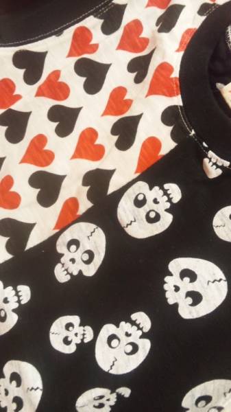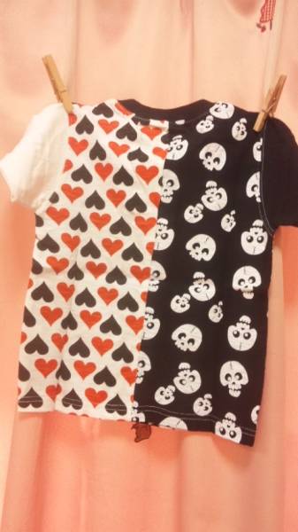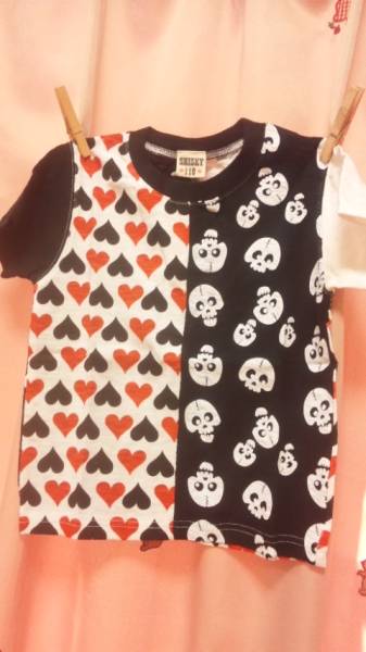 ◆男女児OK♪ドクロとハート柄が半分ずつ♪オシャレ格好いい半袖Tシャツ