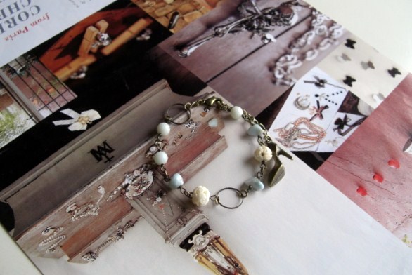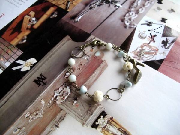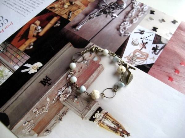 6月の花嫁・・シリーズです♪水色をアートして・・爽やかなラリマーとアマゾナイトのブレスレットです♪シックな水色のラリマーや水色にブラウンやブラックのお色が合わさったナチュラル感あふれるアマゾナイトに透かしのボーンを合わせて可憐な表情です♪8ミリ位のラリマーに6ミリの丸玉のアマゾナイトや9ミリの透かしボーンやデザインリングを合わせました♪長さは全長23センチ位で調節自由です♪お揃いのネックレスも出品しています♪シンプルで合わせやすいデザインを考えました♪ハンドメイドをご理解いただいてノークレーム、ノーリターンでお願いします♪
