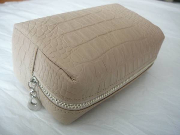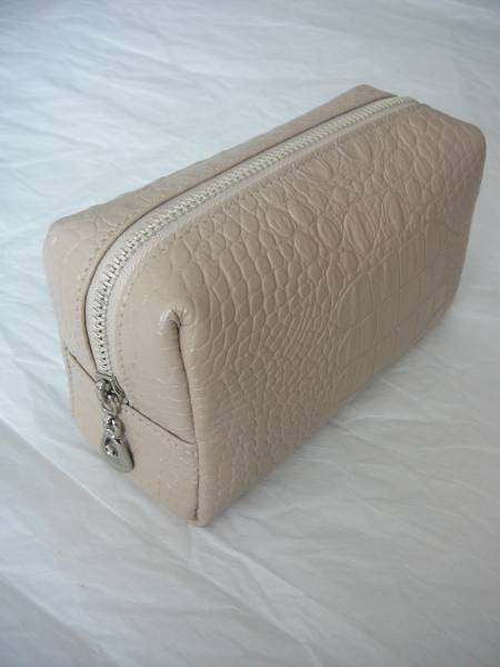 天然皮革牛革皮革型押しポーチベージュ サイズ:8X15X6.5cm 品質;牛革製 カラー:ベージュ クロコ型押し |