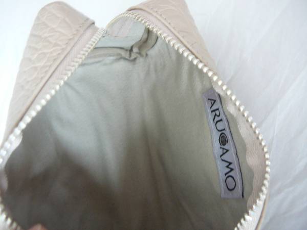 | [商品名] | 天然皮革牛革皮革クロコ型押しポーチベージュ |