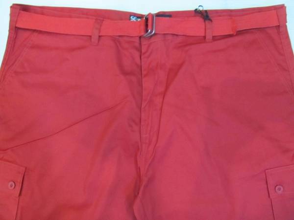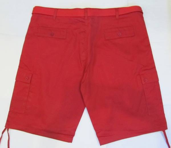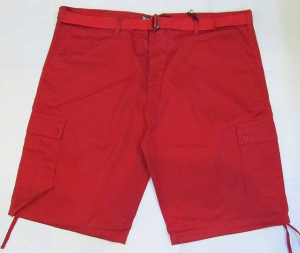 AG76)NEW NATIONベルト付カーゴハーフパンツ赤46-52/超大きいサイズ