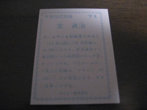 ■カルビープロ野球カード1977年/不世出の英雄/No71/王貞治/巨人 | ||